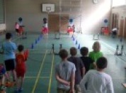 Die Schüler der Klassen sprinten durch den Sportparcours. Die 10 schnellsten
